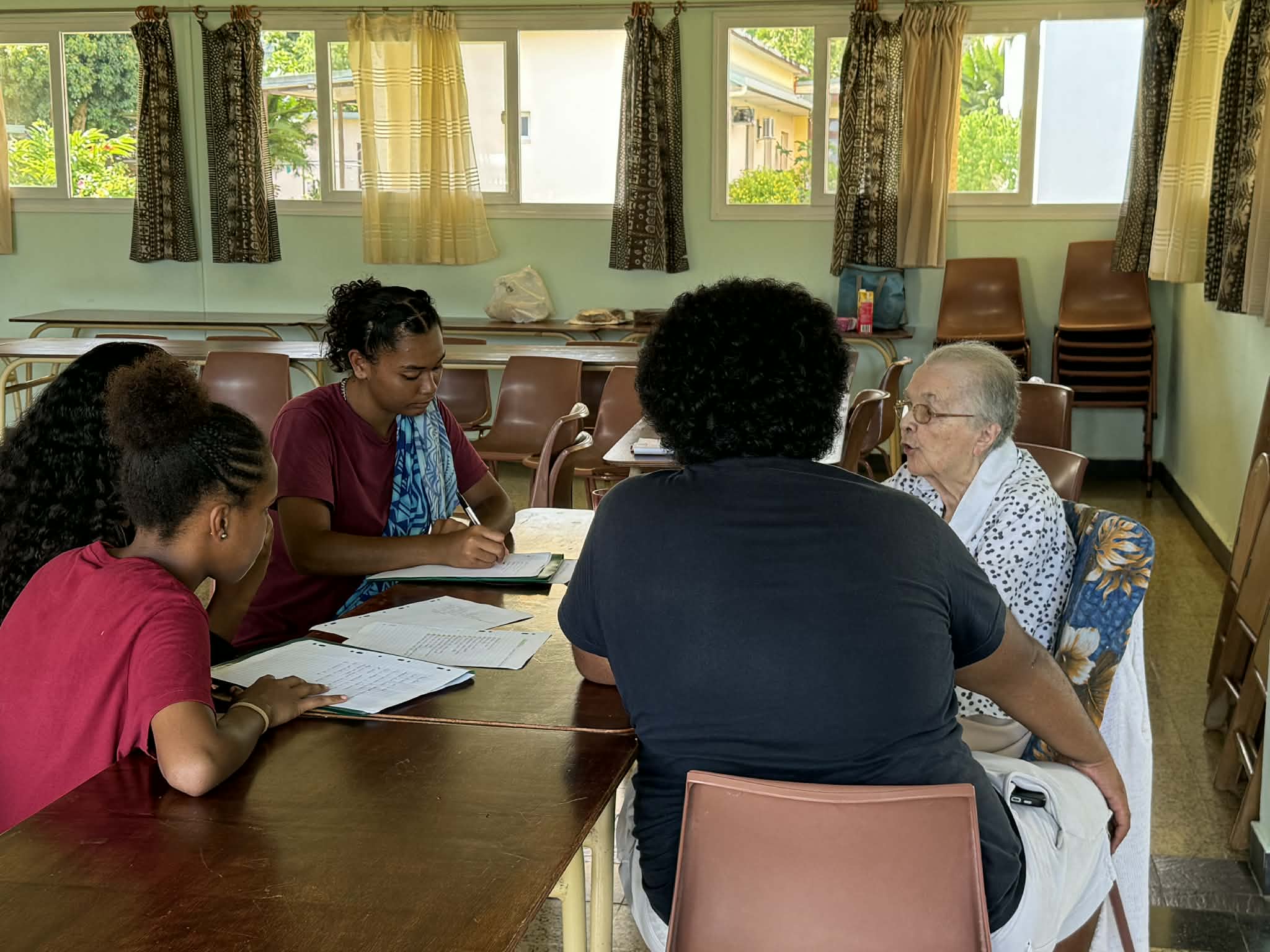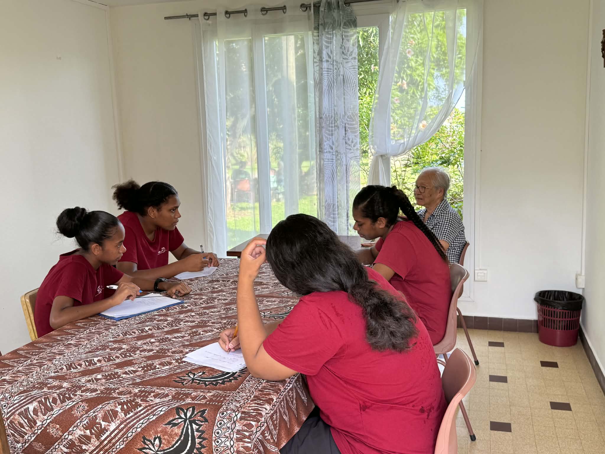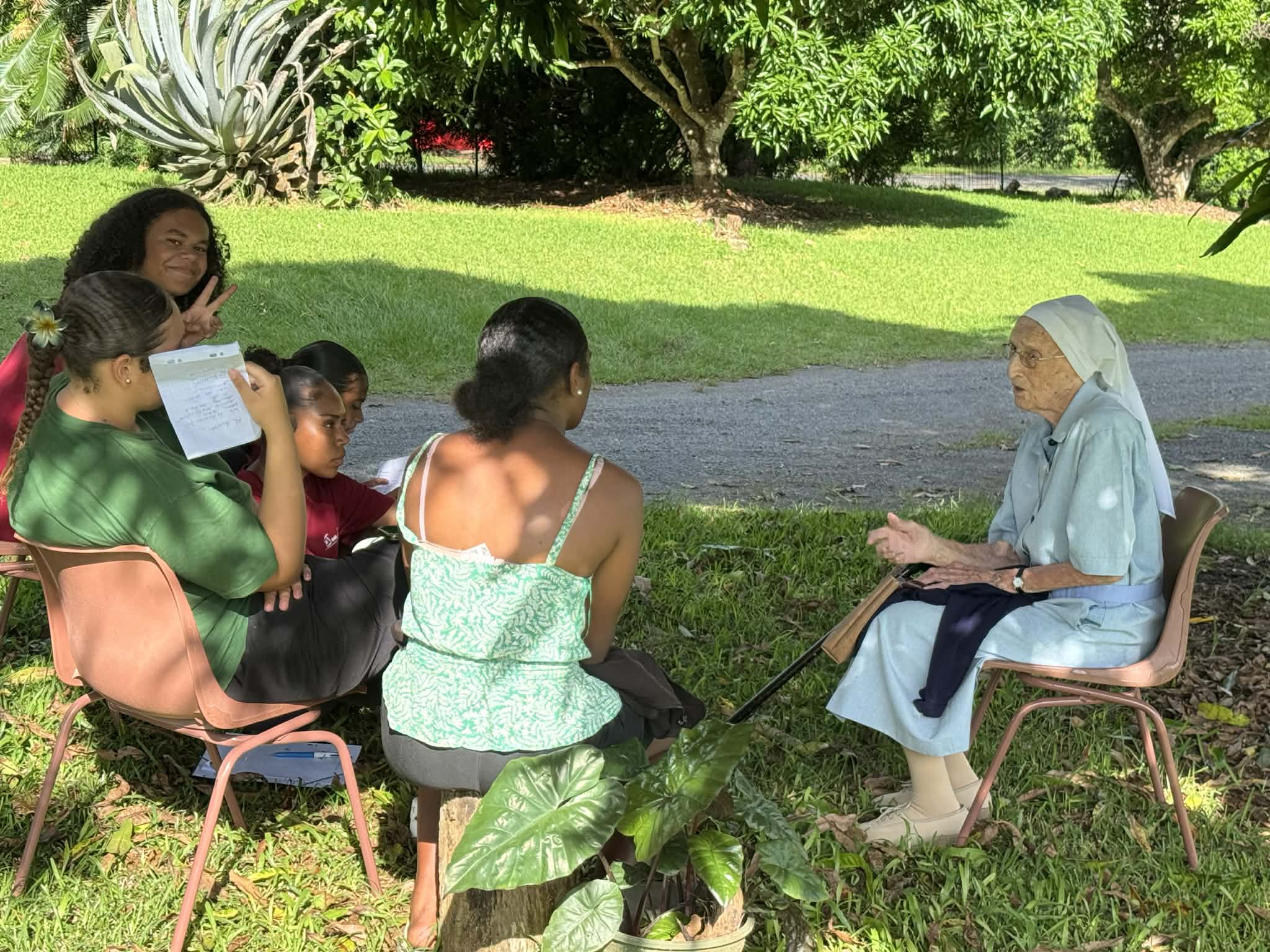 La visite a commencé par la présentation du projet que les élèves souhaitent mener avec les religieuses et, plus largement, avec les personnes âgées de Païta. Les sœurs ont ensuite fait découvrir les différents espaces de la communauté. Les échanges se sont poursuivis en petits groupes, permettant aux élèves et aux religieuses de discuter, de partager leurs expériences et de mieux se connaître.